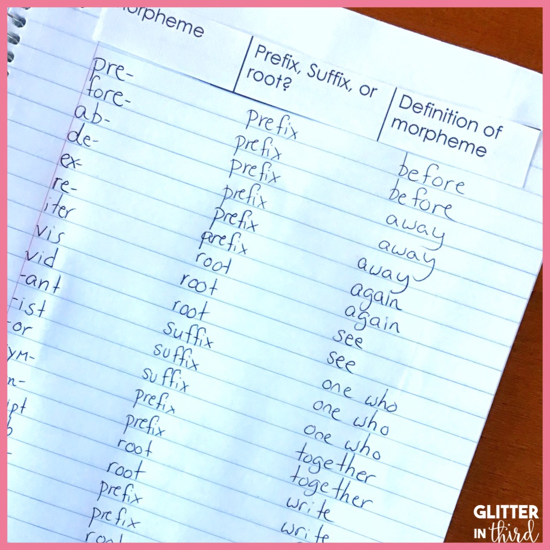 If you are short on time, I have a Morphology Notebook available at Glitter in Third on Teachers Pay Teachers – click here to take a peek!