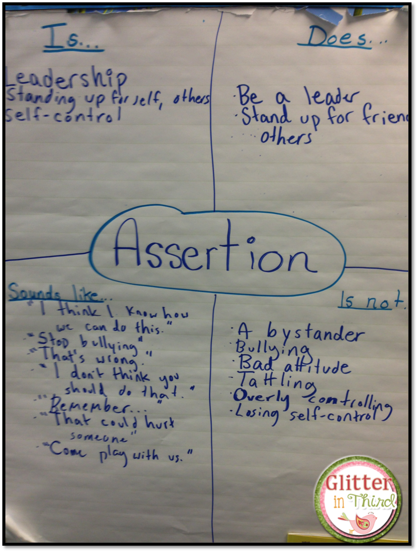 After students act out their skits, we discuss each one. How did it show assertion? What choices did the students make to be assertive in both a kind and respectful way?