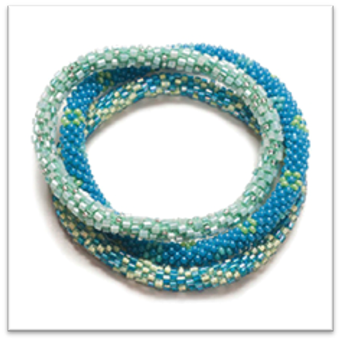 Peace Corps volunteer and teacher Damien Jones founded Aid Through Trade in 1993. Women in Nepal create beautiful glass bead bracelets. These women artisans are supported through the income they receive due to the bracelets that they create.