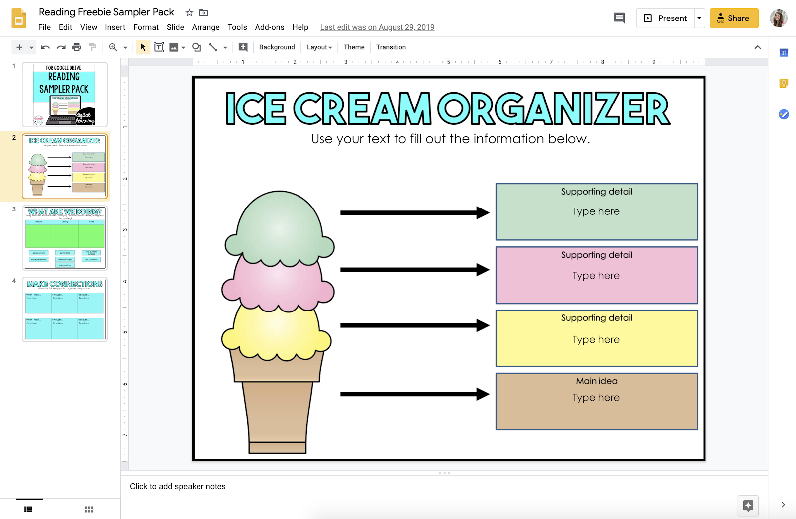 Make sure to download my FREE Reading Graphic Organizers from TPT. It includes a main idea graphic organizer, making connections graphic organizer, and a drag-&-drop activity about what good readers do before, during, and after reading!