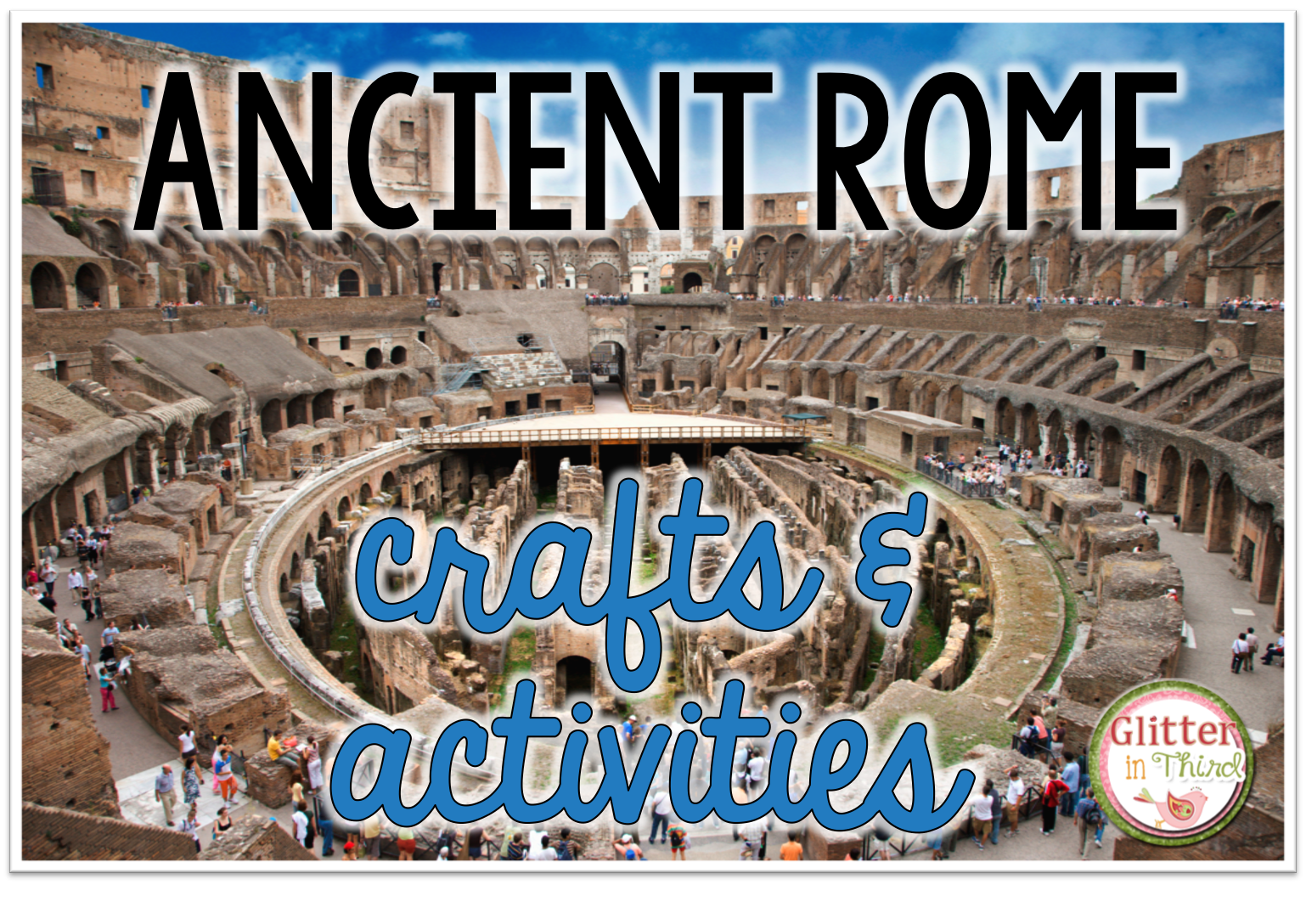 We also made these adorable Roman puppets to learn about the Roman forum. Kids color Roman clip art, glue sticks to them, and act out our own Roman forum. Students take on different roles (like a patrician, soldier, merchant, etc.). This activity is not only fun…you know, because puppets are always fun… but also helps the kids remember that a forum is a place where the ancient Romans did their business, took baths, and conducted their government.