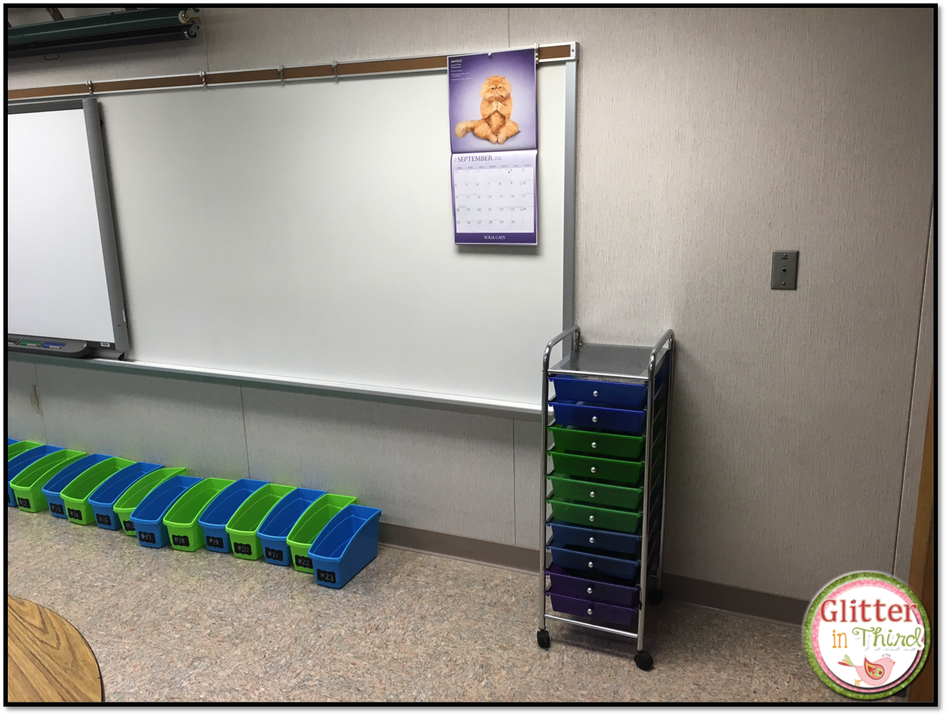 MY NEWEST OBESSION. This cart gets wheeled outside my door everyday. The kids turn in their homework, important papers, and pick up their homework here. This ensures that they never forget to pick something up in the morning, since I stand at the door and can remind them.