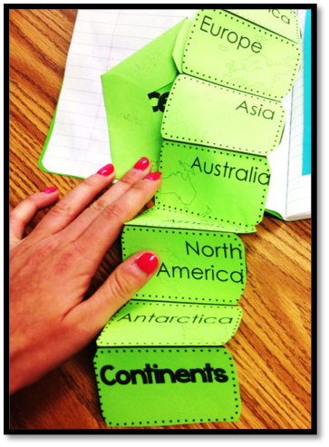 I use my Map Skills & Geography interactive notebook with all of my lessons. The flips and flaps are not only fun for students to create, but also a good reference point. My interactive notebook is differentiated for learners and time. Each resource has a fully filled out copy, a partially filled out copy, and a blank copy. Sometimes I know that my social studies block will be extra short because we have an assembly/fire drill/etc., so I hand out notes already filled out and we simply discuss. Usually though I hand out the partly-filled slips so that we can figure out the answers together.