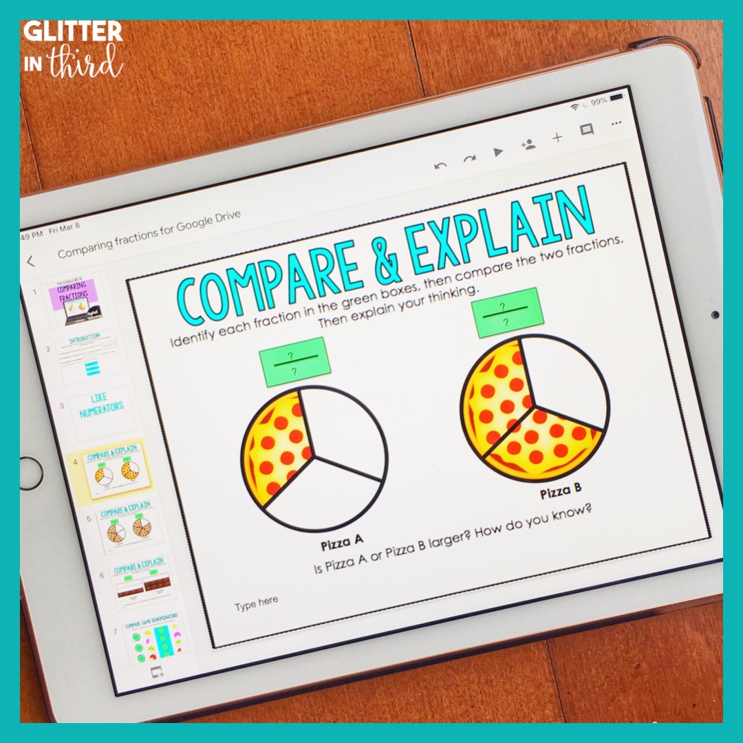 Sometimes I use Google Classroom during stations for new content, but I also sometimes have it as a spiral review. It is a great way to really focus in on a skill that you want students to work on. One of the hardest topics on my classroom every year is equivalent fractions as well as comparing fractions. I often assign a page of my Equivalent Fractions for Google Classroom resource or Comparing Fractions for Google Classroom throughout the year to keep my students sharp on this topic. When you have a difficult topic from the beginning of the year that took students a while to master, definitely keep checking in on it throughout the year to ensure complete mastery!