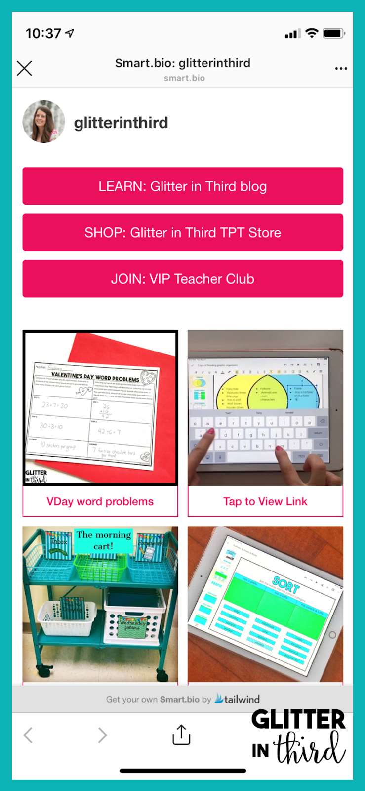 My traffic to my blog and Teachers Pay Teachers products have greatly increased due to the visuals and simplicity of Smart Bio.