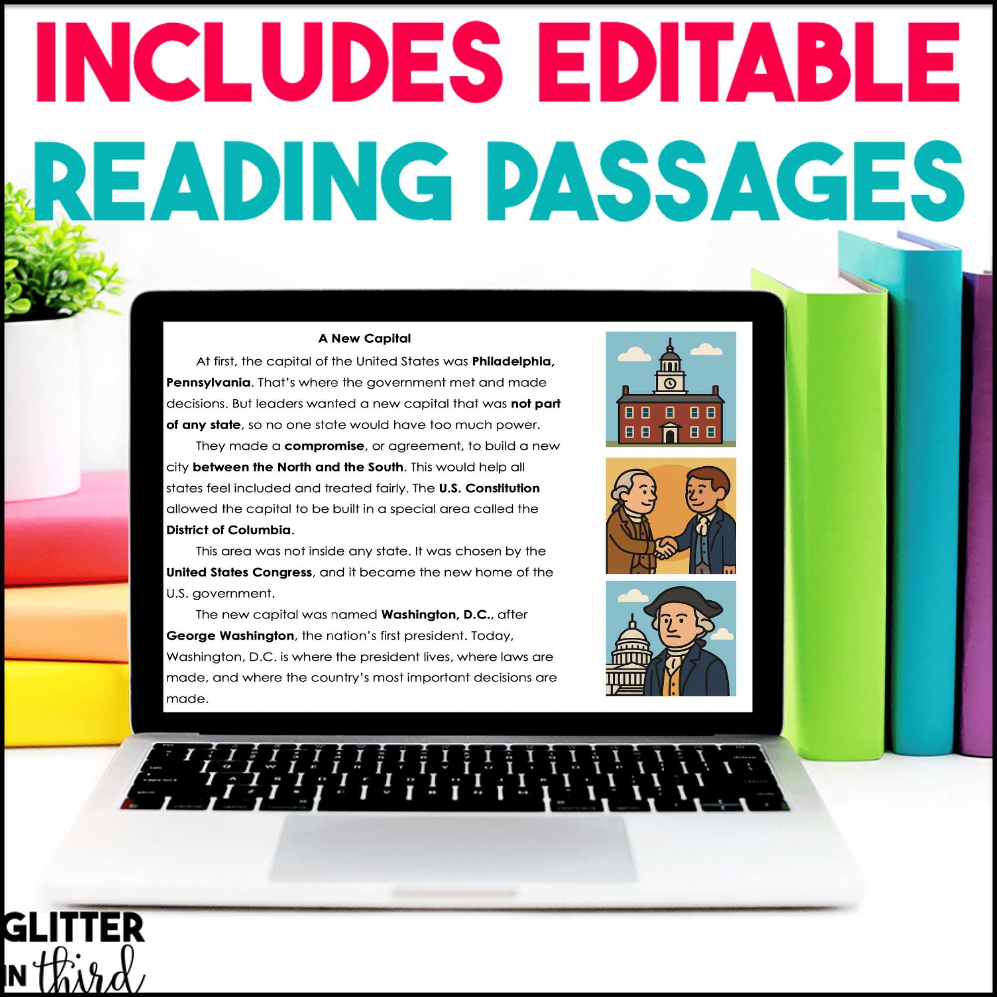 - Editable reading passage: Moving the U.S. capital to Washington, D.C. from Philadelphia