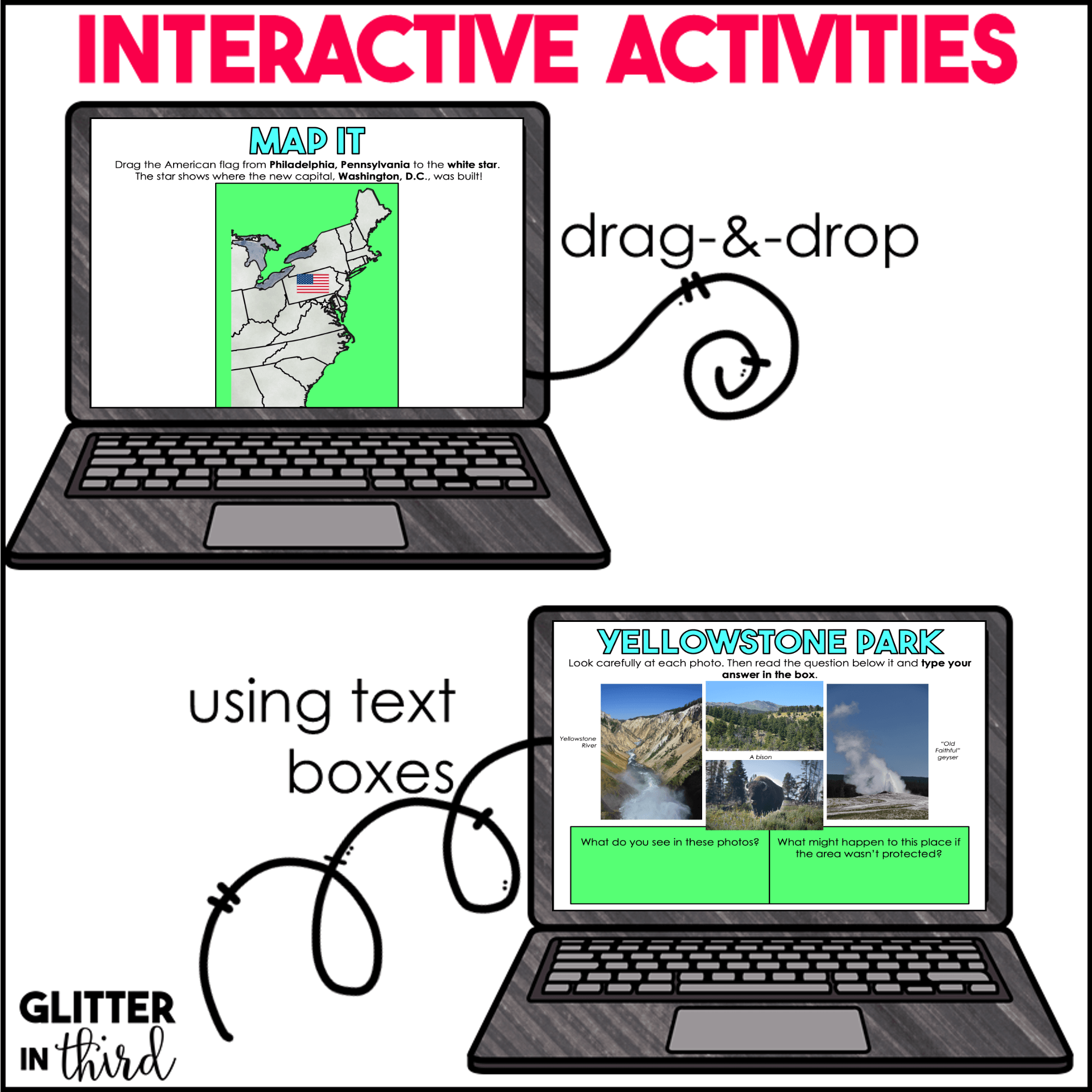 Louisiana Purchase, U.S. Capital & National Parks Google Slides Activities for 2nd Grade